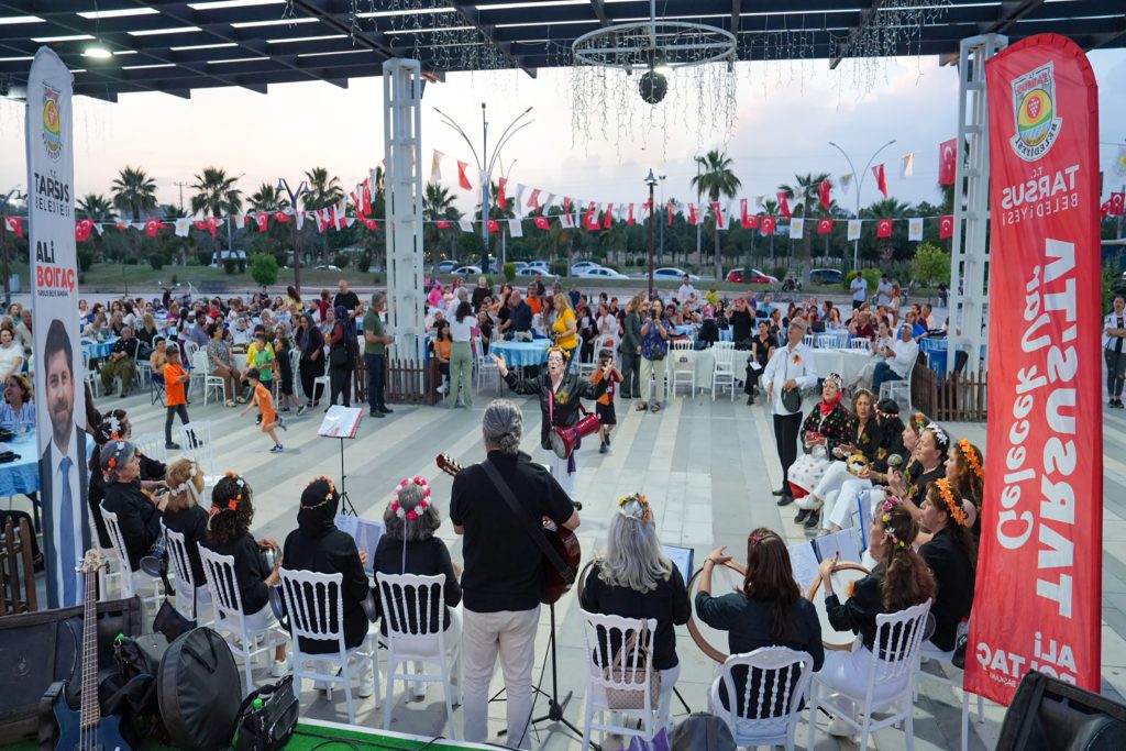 Tarsus Belediyesi Kadın ve Aile Hizmetleri Müdürlüğü tarafından düzenlenen program yoğun katılımla gerçekleşti. Etkinlik, halk oyunları ekibinin renkli kostümlerle sergilediği canlı performansla başladı. Ayak seslerinin ritmi salona yayılırken anneler de alkışlarla tempo tuttu. Ardından sahneye çıkan Tarsus’a Değer Katanlar (TADEKA) Ritim Grubu, darbuka ve perküsyon ezgileriyle izleyicilere coşkulu anlar yaşattı.