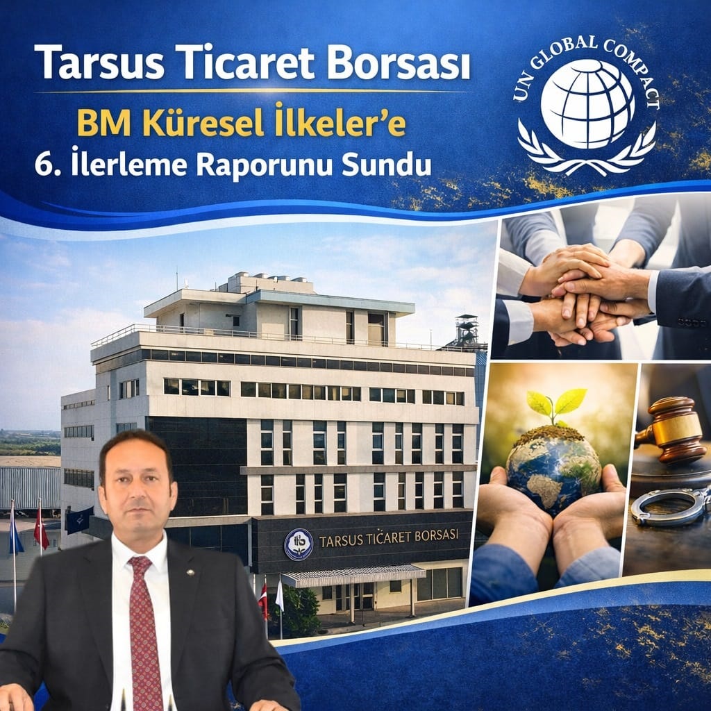 Tarsus Ticaret Borsası (TTB), 2014 yılından bu yana imzacısı olduğu United Nations Global Compact (Birleşmiş Milletler Küresel İlkeler Sözleşmesi) kapsamında hazırladığı 6. İlerleme Raporu’nu tamamlayarak kamuoyu ile paylaştı. Böylece TTB, insan hakları, çalışma standartları, çevre ve yolsuzlukla mücadele alanlarını kapsayan 10 ilkeye uyum taahhüdünü 2024–2025 döneminde de kararlılıkla sürdürdüğünü bir kez daha ortaya koydu.